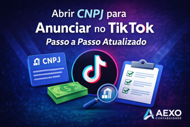 Neste guia completo, você vai aprender como abrir CNPJ para anunciar no TikTok passo a passo, qual o tipo de empresa ideal, o CNAE correto, o regime tributário mais vantajoso, os custos reais envolvidos e como a AEXO Contabilidade atua para estruturar anunciantes digitais de forma segura, econômica e preparada para a Reforma Tributária.