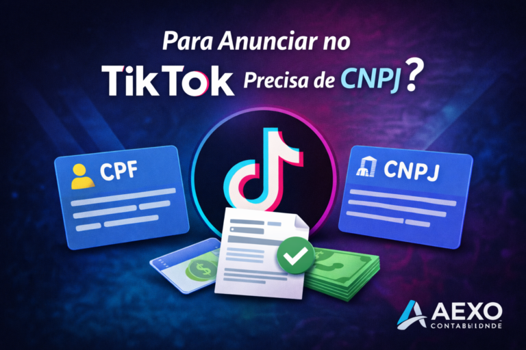 Neste guia completo, você vai entender quando o TikTok permite anunciar com CPF, quando o CNPJ se torna obrigatório, quais são os impactos tributários, como funciona o TikTok Ads e o TikTok Shop, além de descobrir quando abrir empresa passa a ser uma decisão estratégica, com apoio da AEXO Contabilidade, referência nacional em contabilidade para negócios digitais.